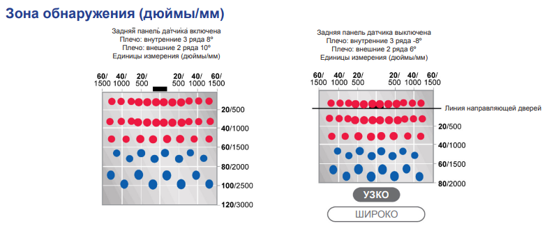 Не бывает трёхметровых дверей, это уже ворота. Не знаю его точную ширину зоны контроля, но она видимо сопоставима с "обыкновенными дверями". А избыток ширины вреден - опять же фикус в кадке у стены сбоку от двери будет мешать закрыться двери. Вот для этого у них и есть регулировки на датчике по глу...