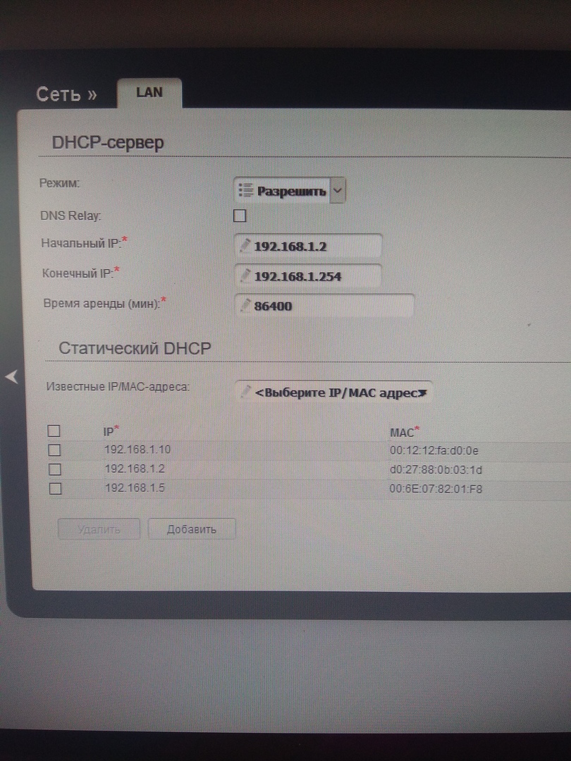 kROOT писал(а):А вот настройки DHCP надо начальный адрес сделать 1.30 к примеру, чтобы другие устройства не получали адреса оборудования.