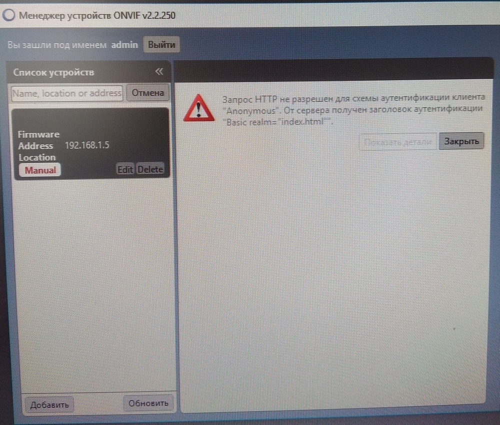 Или ONVIF на камере проверить? (сейчас под рукой нет, но вроде тоже ONVIF. на выходных проверю)