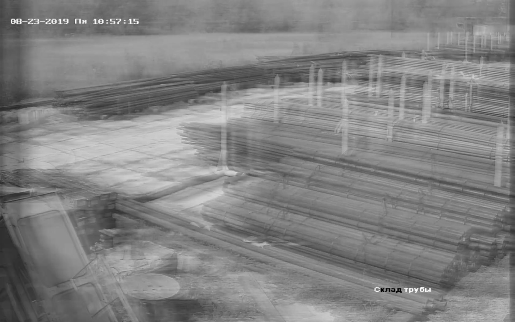 Путем разных проб и манипуляций я вроде бы выяснил, что дело в кабеле. (камеру отдельно включал, даже в именно это место подсоединял другой кабель от другой камеры, чтоб убедить что нет наводящих токов и т.д.) Но поменять кабель не получиться потому что установшики сделали такую фигню, что кабель входит в здание на второй этаж и проходит через кабинет директора под потолком, который не разберешь уже и идет на первый этаж фиг пойми какими путями.