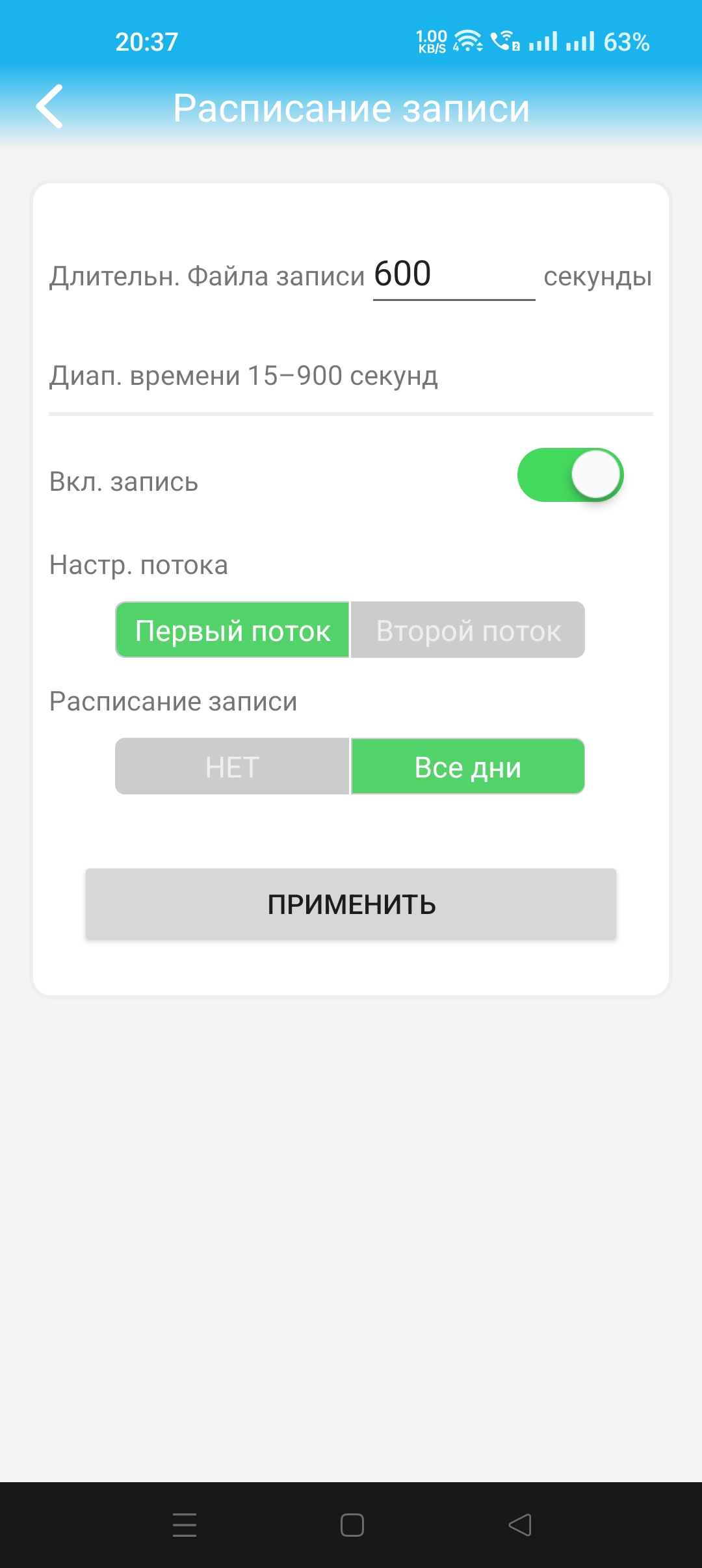 И все таки, в этом приложении CamНi -запись идёт до полного заполнения карты памяти , а затем обнуляется , и так по кругу !!!