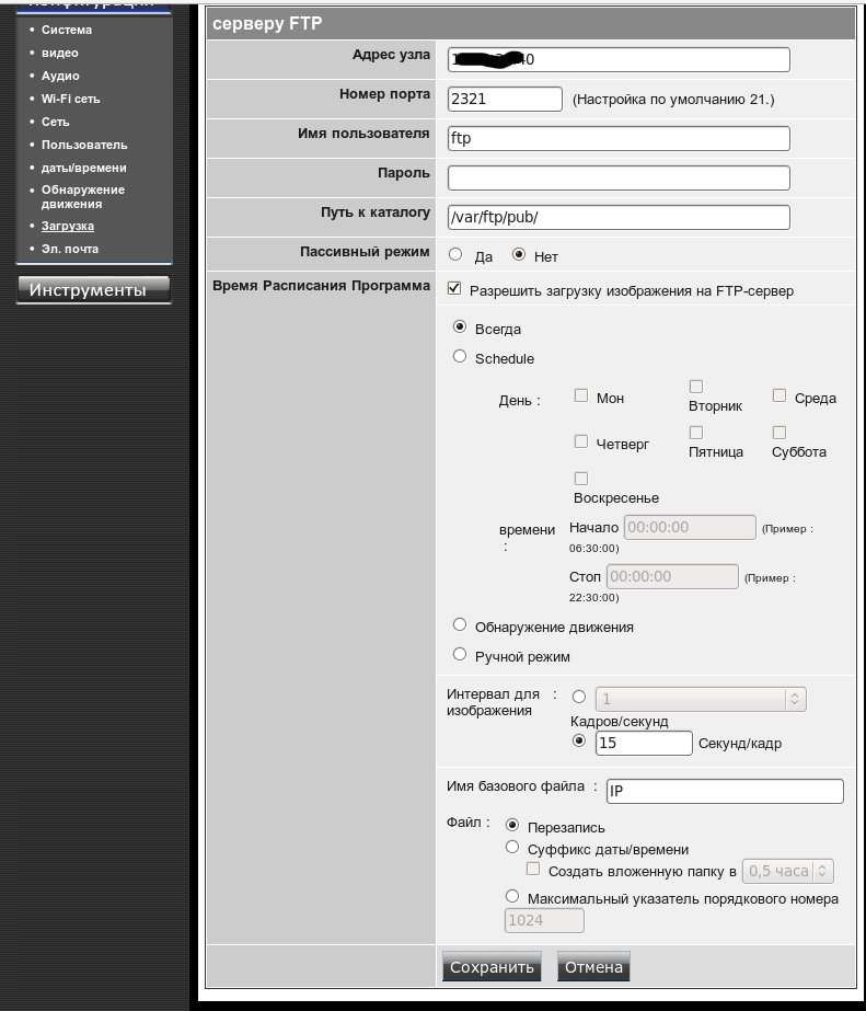 Необходимо сохранять видео - нашел в настройках камеры только на почту (НЕ ВАРИАНТ) или по FTP.