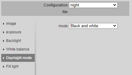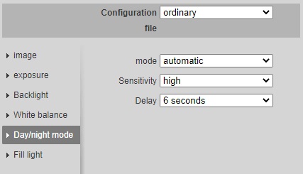 Тут же можно выбрать и автоопределение день-ночь. Но, это только ч/б или цвет. А выставить разные выдержки или уровень шумодава нельзя. Они только на уровне профиля.