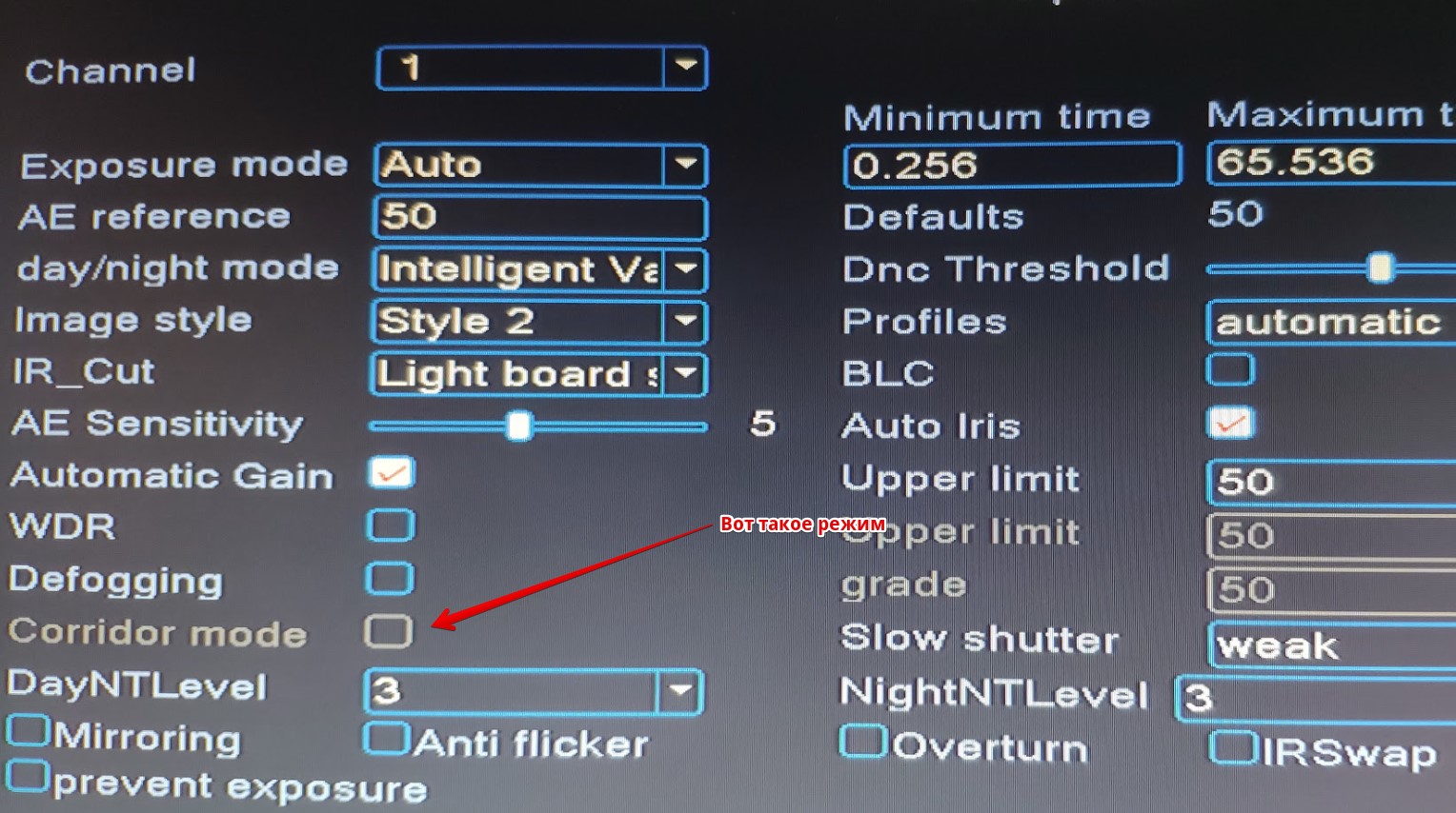 Не подскажите, у XM - ких камер коридорный режим вообще есть?