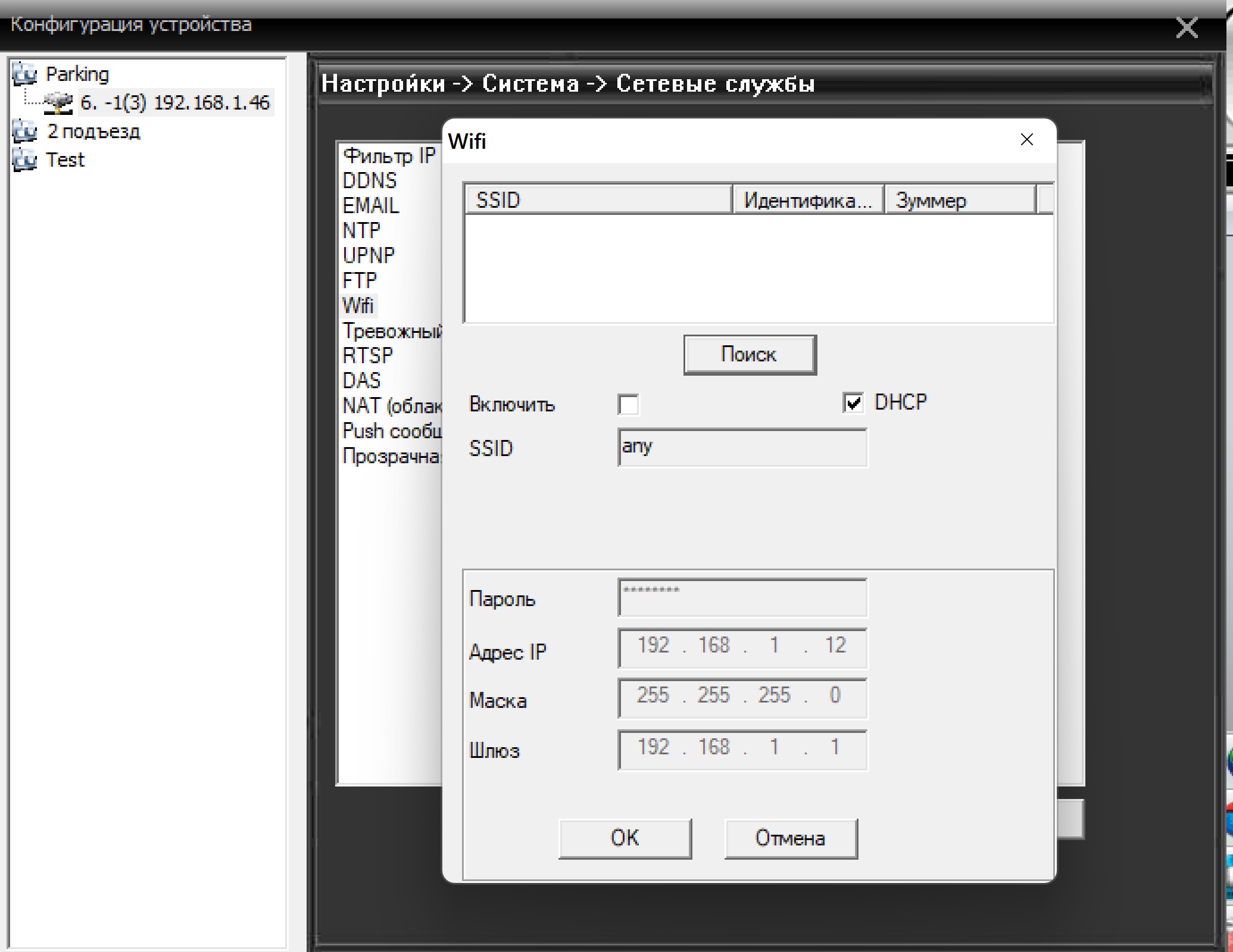 На странице настроек вайфай я выбирал нашу сеть, вводил пароль, прописывал айпишник из нашей сети. Нифига.