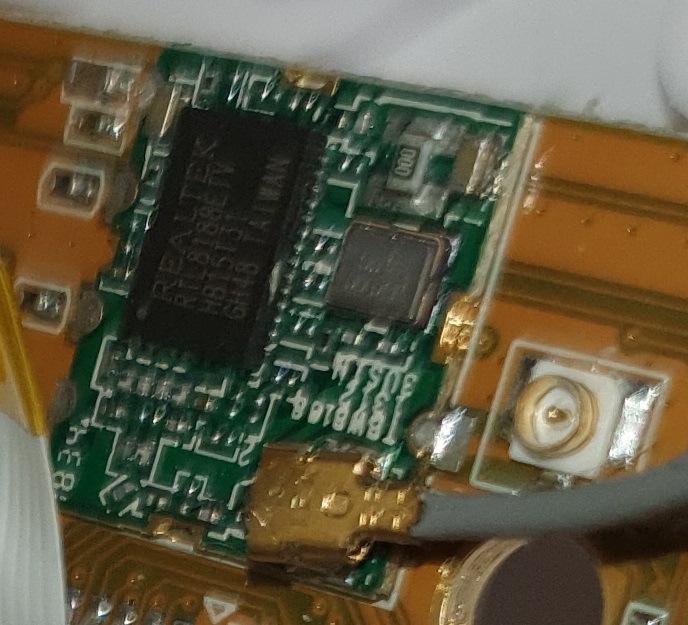 Сама камера норм. Вот ещё фотка чипа wifi - сеть держит хорошо. поток rtsp с булькающим звуком, но на карту пишет с нормальным. крепление на стену в комплекте вообще отличное. двусторонняя голосовая связь. В общем, за свою 1000 рублей на распродаже - отлично.