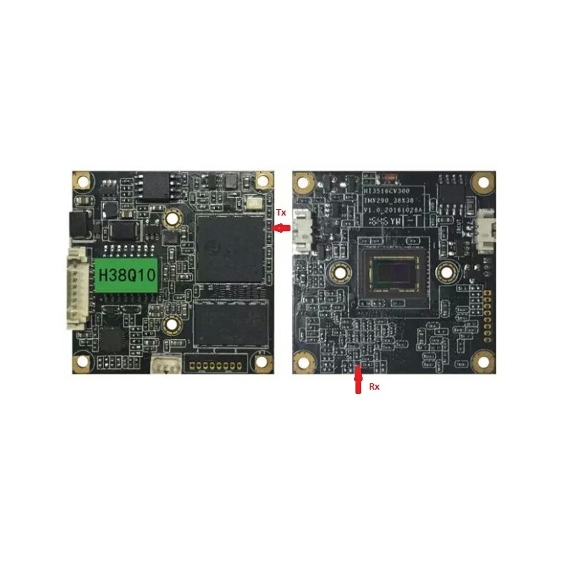 Китайский модуль H38Q10, слетела прошивка на нескольких камерах , видимо из-за питания. Сняв дамп с 128L12835F с "живой" камеры удалось восстановить приборы, но получив клоны с одинаковым МАСом возникли проблемы при работе на одном коммутаторе. Несмотря на "зашифрованость" китайским производителем данного прибора,а именно явным отсутствием пинов Rx Tx удалось найти их и подключиться по UART.