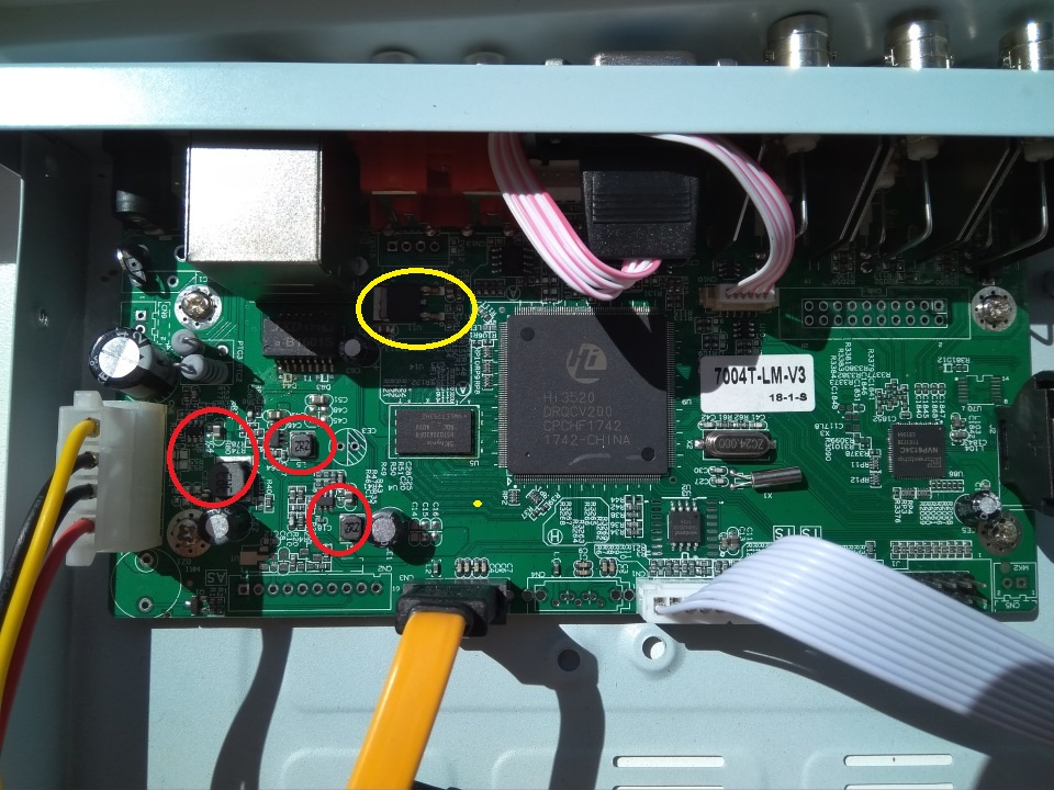 Красным - шимы с дросселями, желтым - похоже на стабилизатор. Ну и фото обратной стороны рега тоже бы не помешало опубликовать.
