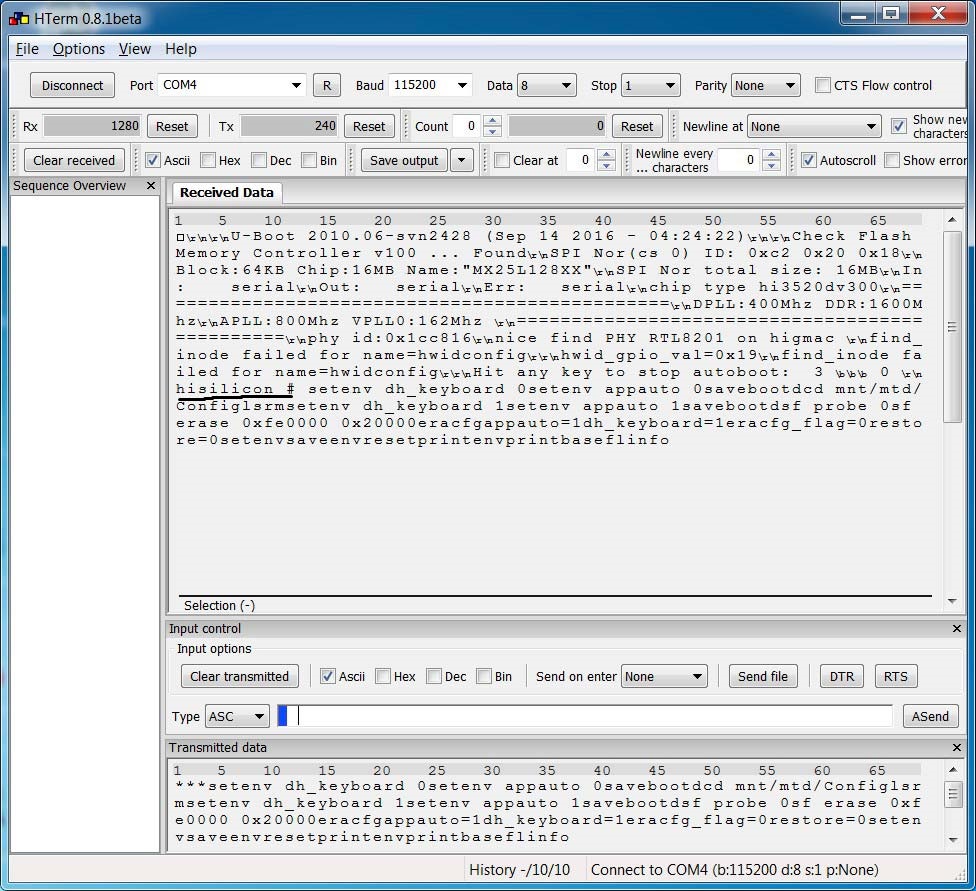 после отправки *** и остановки загрузки на приглашении hisilicon # дальше набирал команды,