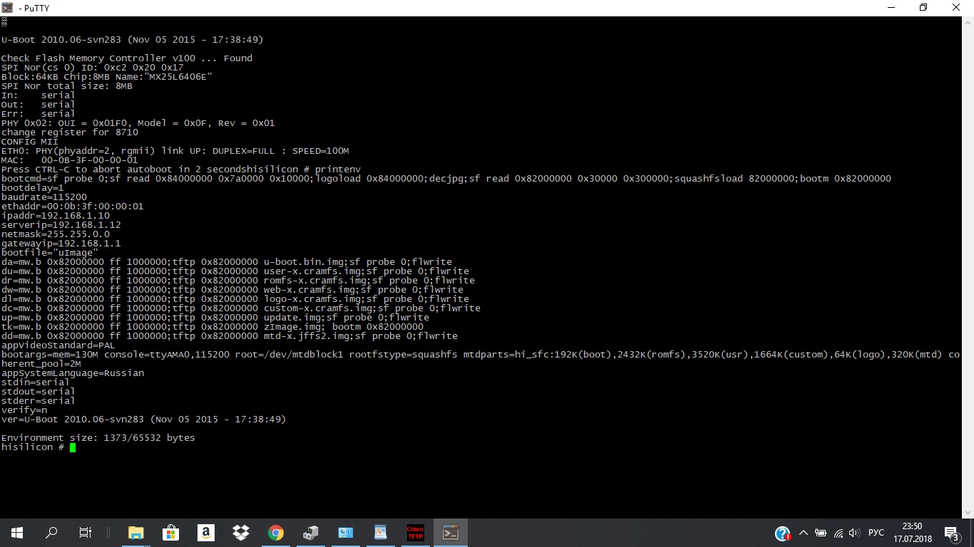 в терминале остановите загрузку и покажите вывод printenv
