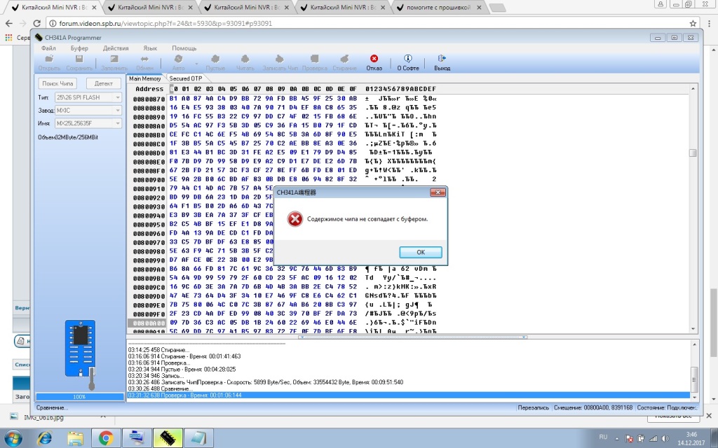 при проверке пишет что содержимое чипа не совпадает с буфером