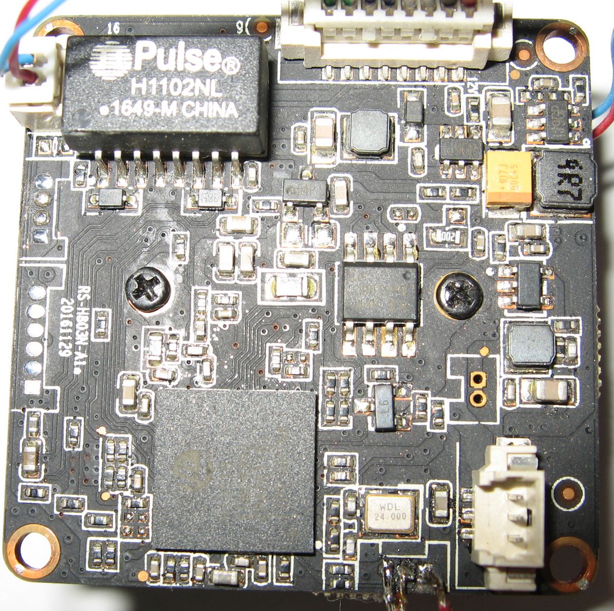 Уже снял. Нужен? Еще могу фотки сделать. Камера обычная круглая, для внутренней установки. На главной плате разъем ethernet совмещен с питанием и имеет 8 пинов вместо 6. 4 пиновый разъем питания отсутствует, но он есть на кабеле, на нем оставлены только 2 пина для POE. Еще на плате есть нераспаянный разъем UART 3 пин, распаянный 6 пин с аудио и проч функциями, распаянный 4 пин USB. Он для wifi модуля (?). USB разъем отломан. По всей видимости, его отламывают при сборке камеры, в этом заключается российский этап производства модуля
