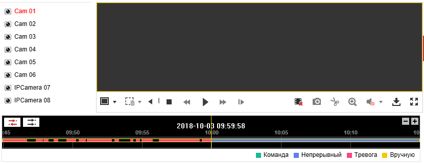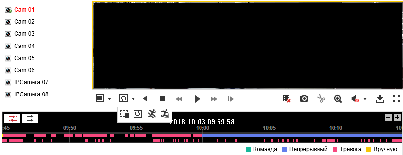 Все он умеет - не вводите людей в заблуждение (скрины с вебки DS-7616NI-E2/8P):UefLV писал(а):Hik, не умеет записывать одновременно по нескольким критериям, например постоянно с одними параметрами, по движению с другими параметрами с отображением типа записи на тайм ленте