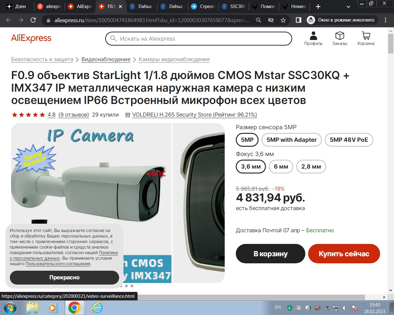 в общем такая же, цена качество )gmv36 писал(а): ↑28 фев 2023, 19:47Так я и думал о такой, но что-то сомневаюсь, что она только у одного продавца... А у Вас какая?oleglevsha писал(а): ↑28 фев 2023, 18:54купите IP-камеру с сенсором StarLight CMOS IMX347