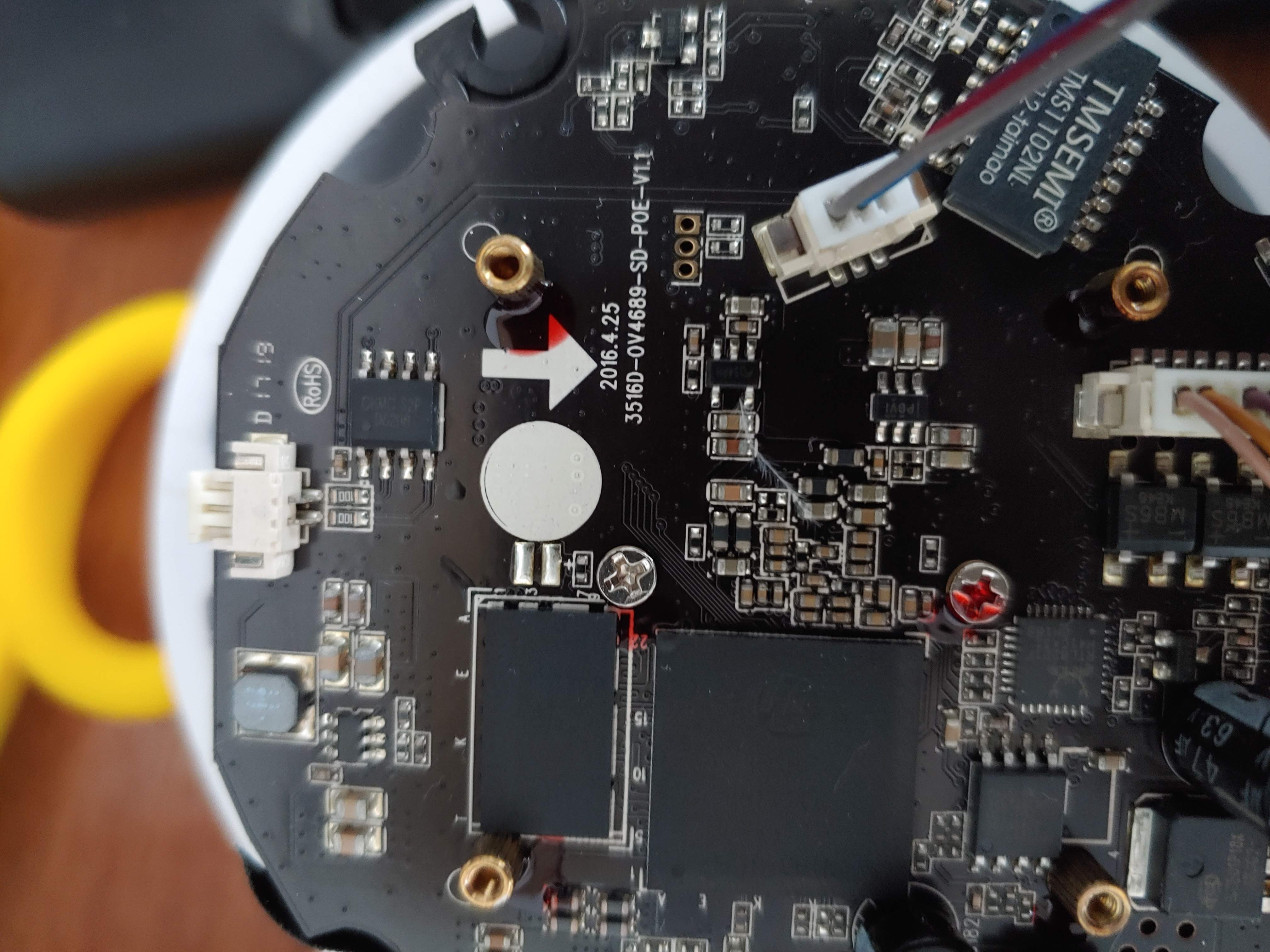 Снял крышку, под ней плата с надписью 2016.4.25 3516D-OV4689-SD-POE-V1.1.