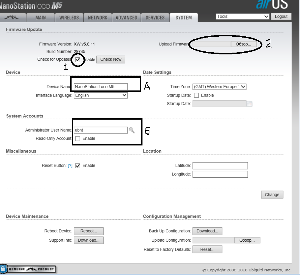 Открываем на АР вкладку systemи снимаем галку с CheckforUpdates: (1) Она там лишняя. Принимаем изменения и сохраняемся change и apply соответственно.