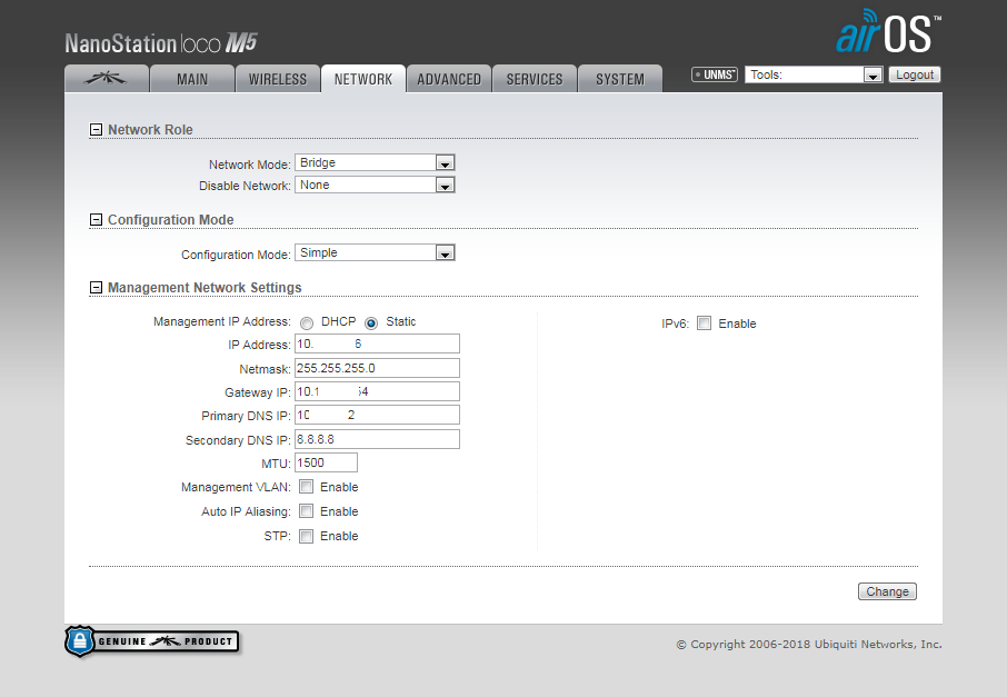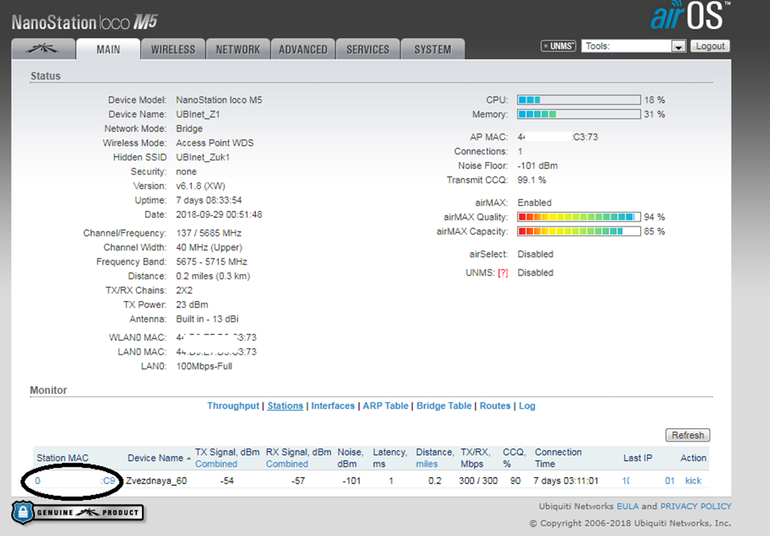 Re: Настройка wi-fi моста на nanostation loco M5