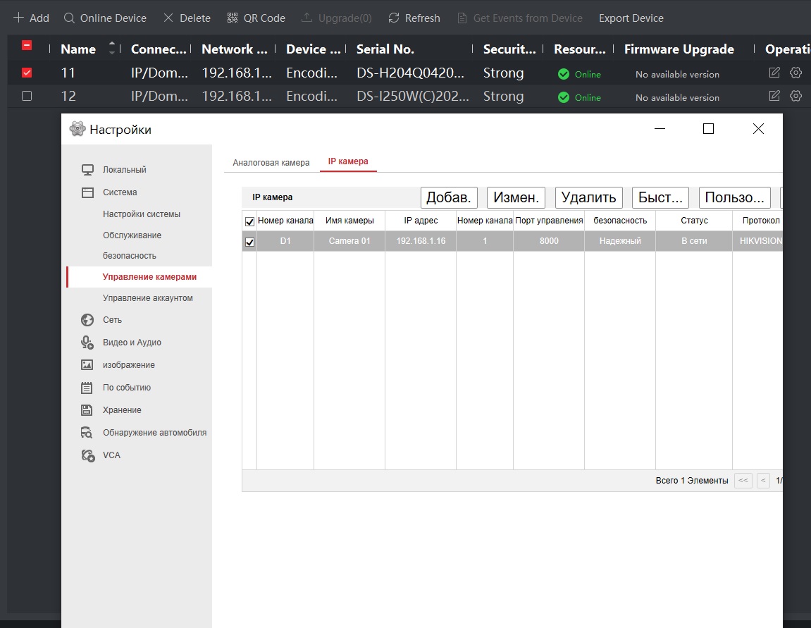 Через HIK-connect вижу оба устройства.