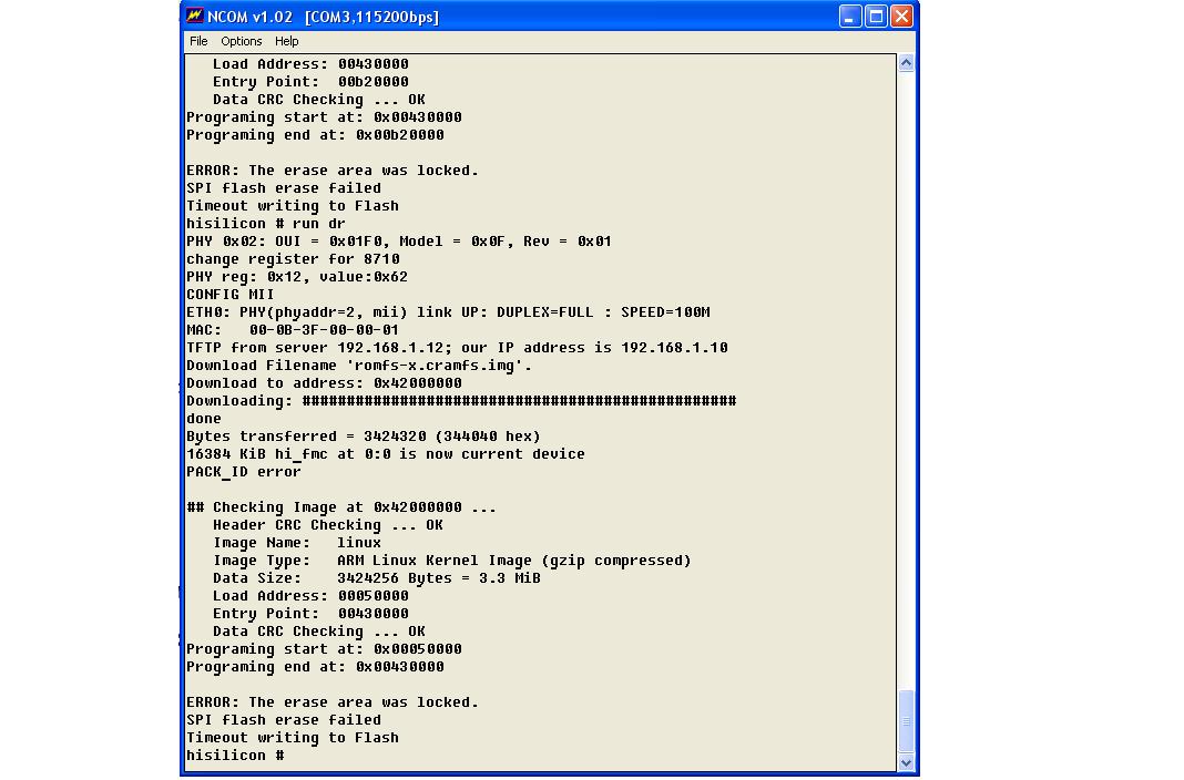 Скрины логов попытки прошивки через TFTP.