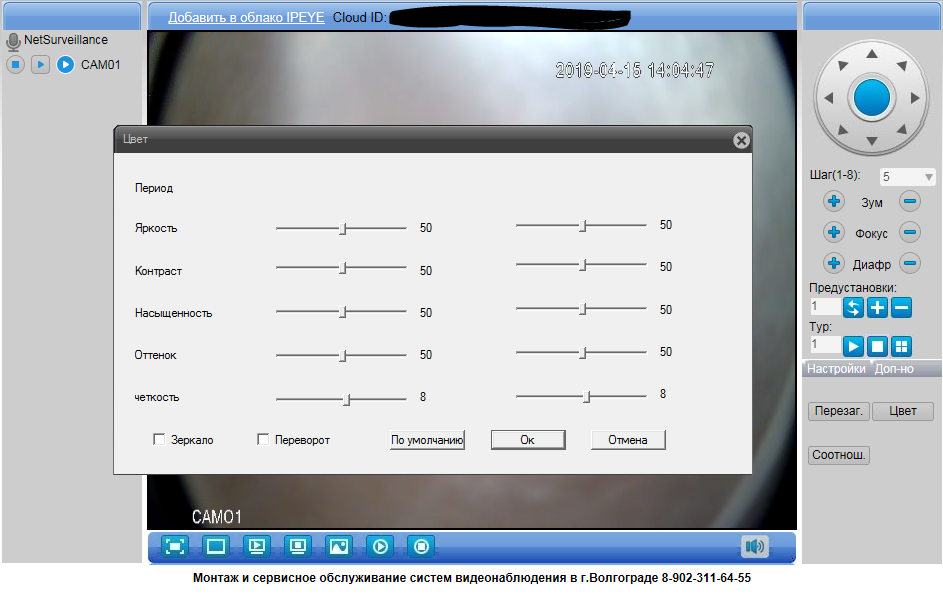 выбери поток камеры и нажми на *Дополнительно*>*Цвет*