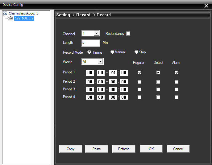 AlienP666 писал(а):Длина записи у вас для камеры сейчас стоит 5 мин. Redundancy - резервирование на второй HDD.
