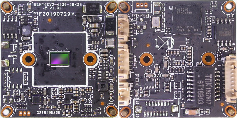 IVG-85HF20PYA-S (hi3516ev200+imx307) - самый удачный на сегодняшний момент вариант в плане чувствительности, даже лучше, чем прошлогодний флагман на IMX291. IVG-85HF30PS-S (hi3516ev200+sc4239) - самый бюджетный модуль. Пришёл на смену IPG-80HE20PS-S (hi3516ev100+sc2235), при этом он оказался не хуже, да ещё и 3Мп. IVG-85HG50PYA-S (hi3516ev300+imx335) - флагманская модель. 5Мп на соневском сенсоре - это вещь! По чутью хоть и уступает IMX307, но картинка ночью на уровне классики IMX322 На картинках видно, что на модулях не распаян разъём под плату расширения, что даёт надежду на появление таких модулей с поддержкой SD карты, USB флешек и WiFi.