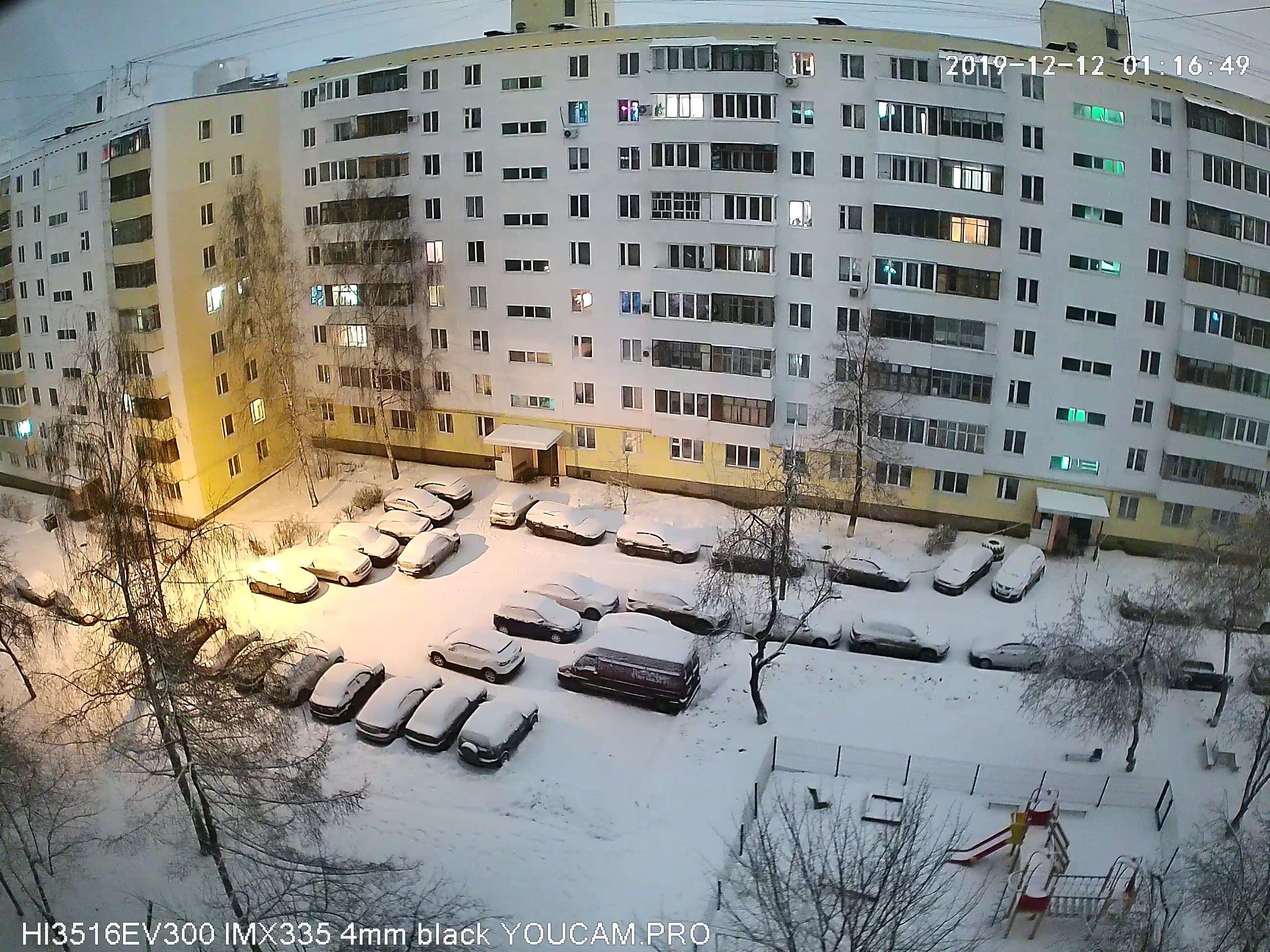 А это с обычным объективом 2.8мм 5мп в чб и цвете, причем раньше в цвет не переключал ночью, а так получается очень неплохо, интересно как будут проезжающие машины смотреться. Понятно что только при снеге такая картинка, в дождливую погоду ничего видно не будет.