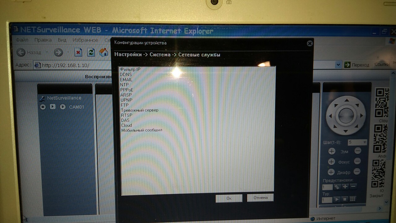 Просто, настраиваю на ноуте, и т.к. там сеть lan для коннекта с камерой- то интернета нет. Было проще снять экран мобильником)