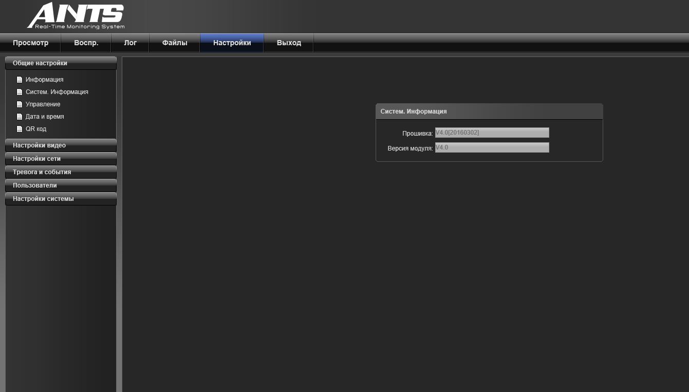 Была установлена прошивка ANTS v4 2016 (ниже скрин). К сожалению не знаю как сохранить прошивку с регистратора. Не работало ни облако, не удавалось пробросить порты что бы подключаться с андроида. Решил залить прошивку с сайта Тантос для этого рега, она там единственная от 2015года. Оказалось это почти тоже самое, только теперь еще и русский язык пропал в веб интерфейсе, и так же не работает облако, еще и CMS перестал видеть рег. Скажите как и где подобрать к этому регу свежую нормальную прошивку?