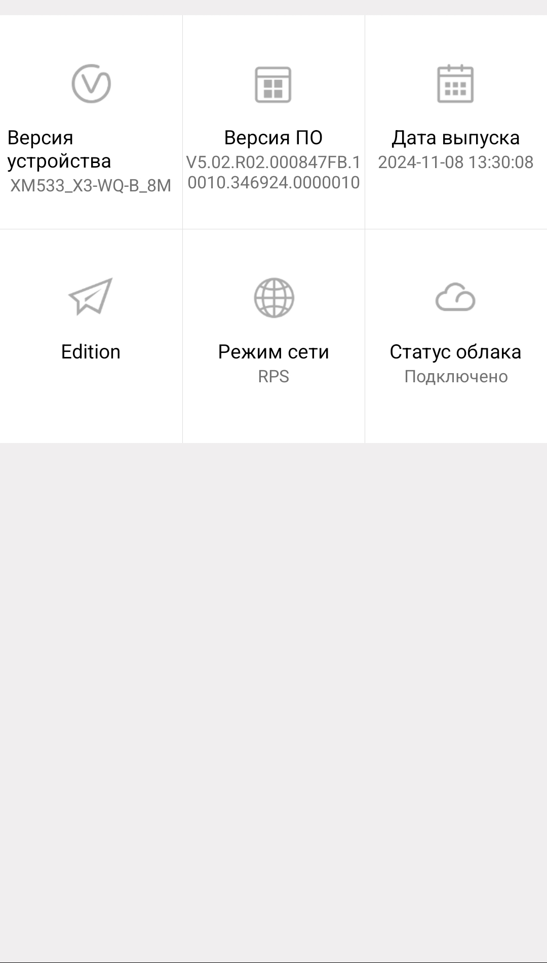 Всем здравствуйте! Купил недорогую камеру для наблюдения за кошками в период нашего отсутствия. Особые требования не нужны, но смущает то, что камера определилась и даже добавилась в общий массив регистратора XM, в программе ICSee можно посмотреть прошивку и даже получилось скачать обновление, после чего камера заговорила по-русски, но вот нигде нет информации, что за модуль на ней установлен, что вообще за зверь. Очень это смущает. Разбирать не хочется, может по номеру прошивке кто подскажет? Вот он