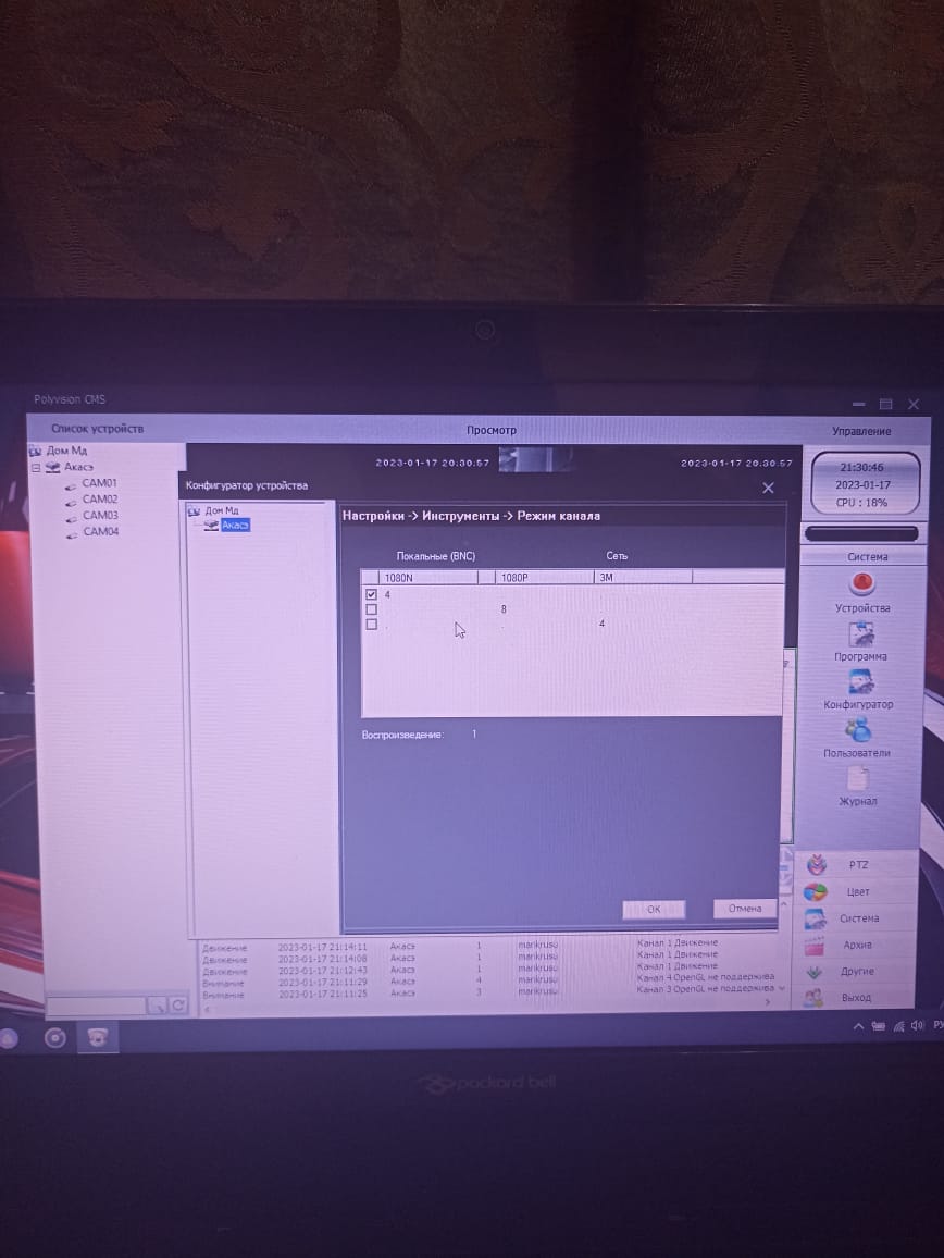 Такая проблема, у меня видеорегистратор на базе Xmeye, удалённо пользуюсь программой CMS на компе, но вчера мне было интересно что будет если поменять ( режим канала ) , было 4 камеры на 1080N ,поменял на 8 камер на 1080Р, всё сдохло камер не обнаружено. Потом поменял обратно на 4 камеры на 1080N, вроде заработало но качество плохое и с рывками на 1-2 сек. А еще пишет на против камер что (OpenGL - не поддерживается). Помогите пожалуйста вернуть всё как было. Спасибо!
