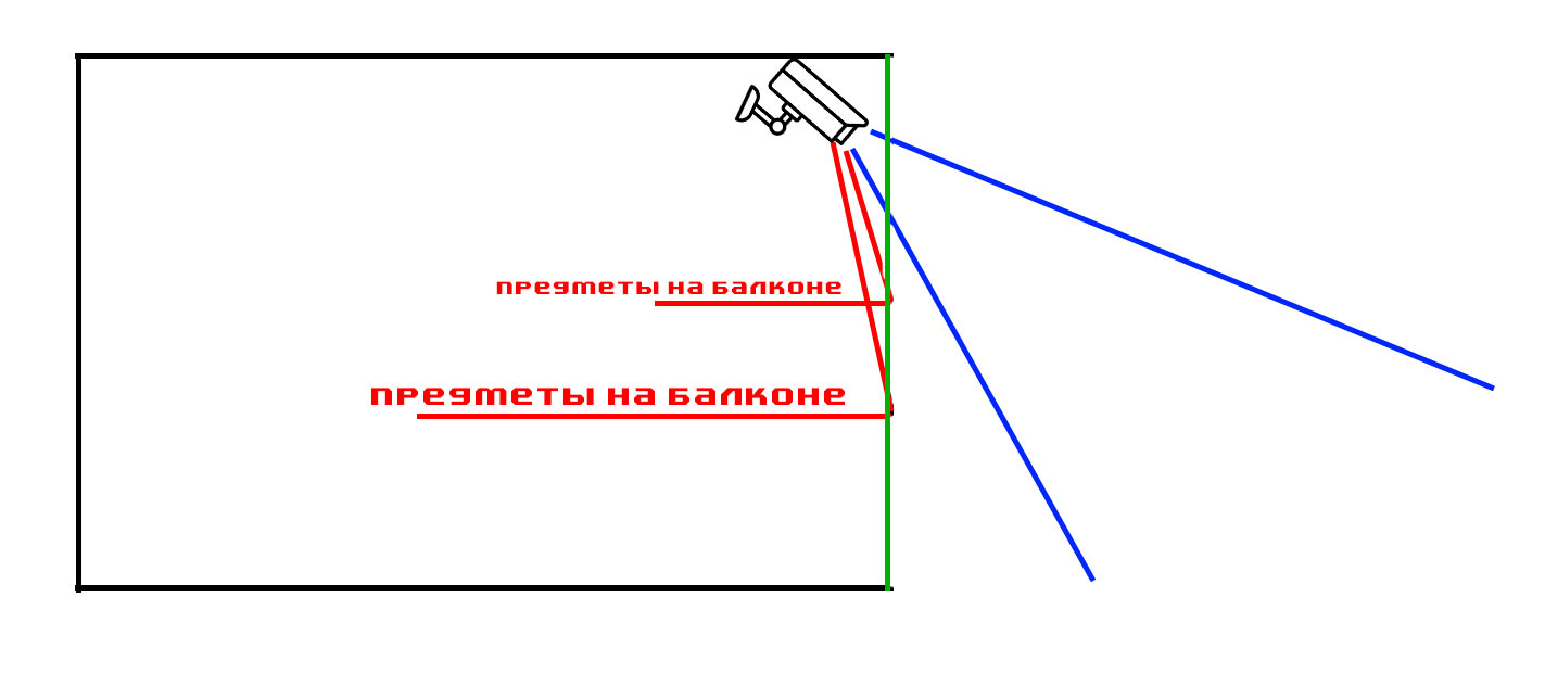 На балконе вверху установлена камера, смотрит вниз примерно под углом как нарисовано на изображении. В камеру идёт отражение от стекла от предметов на балконе. Может, Есть ли какие то напыления на стекло или ещё какие нибудь другие способы устранять такие отражения? Мешают не особо сильно, но усложняют усложняют немного жизнь, особенно вечером, когда ещё уличные фонари включаются.