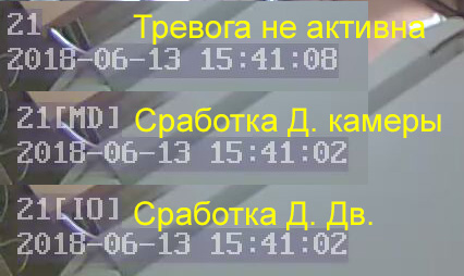 И ещё заметил; есть у меня 2 внутр. камеры с предустановленными PIR датчиками. Так вот у них на изображении присутствует индикация о срабатывании оптич. датчика движения камеры или PIR датчика.