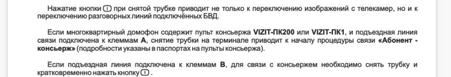 Проблема в следующем - установлены БКМ-440, VIZIT-M456C, БВД у двери на этаже и подъездный, при вызове от подъезда получаем звонок, открываем дверь и ждем вызова с этажа, но он не проходит (вернее проходит по инструкции - моргает светодиод, но звука нет) так как после вызова снизу домофон не переходит в дежурный режим, причём в дежурный режим его не отправить никаким методом, ни кнопкой открывания, ни поднятием-опусканием трубки. По истечении какого-то времени (несколько минут не засёк, но успеваю подняться в лифте на 9 этаж позвонить в БВД у двери и зайти в квартиру) поступает звонок от БВД на этаже, видимо когда подъездный отключится. Вопрос - кто в этой связке удерживает соединение и не даёт сбросится в дежурный режим. Фарами помигал, по колесу постучал