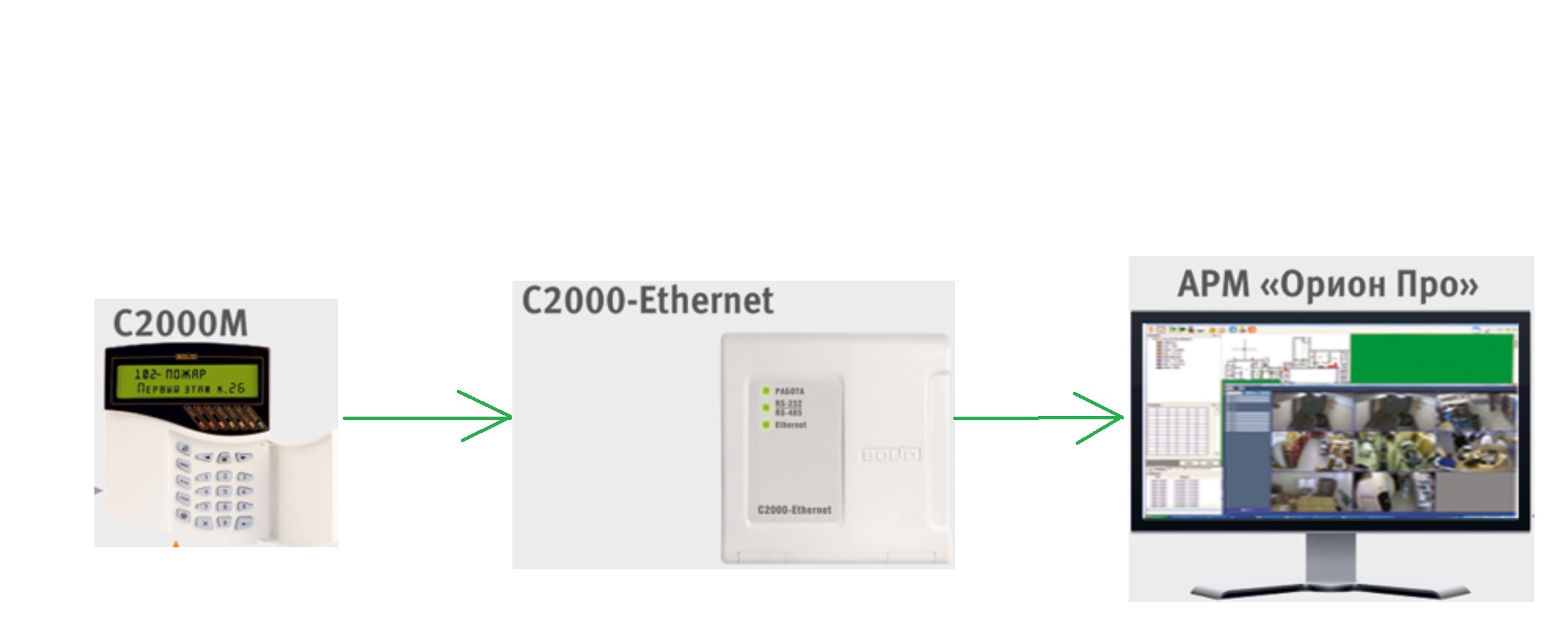 АРМ «Орион», АРМ «Орион Про», пульт контроля и управления «С2000М» или «С2000».