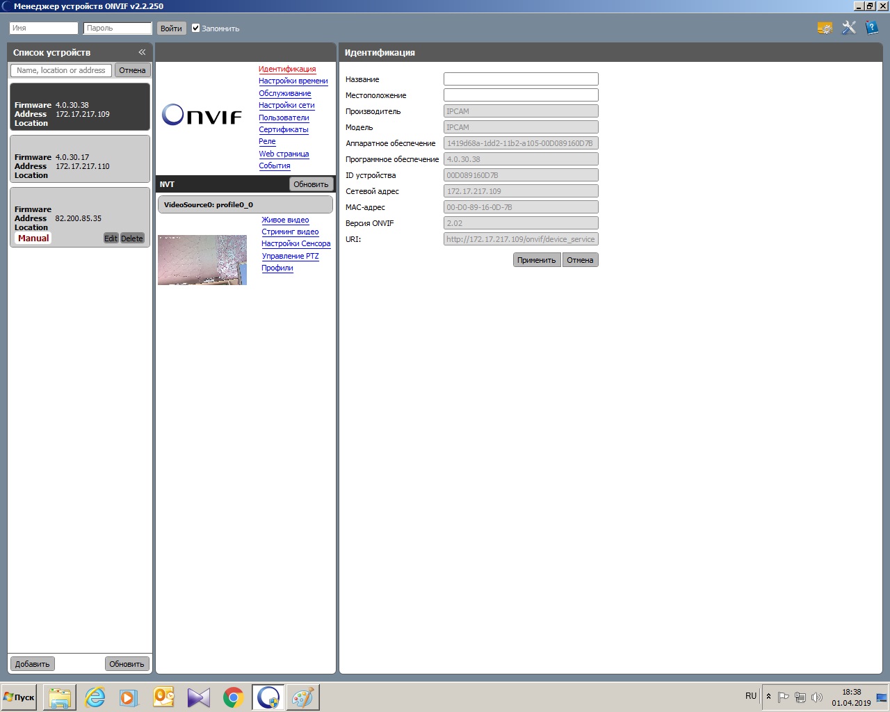 Камера из-за питания перестала видеться в сети.Сделал бэкап дампа через UART.Произвел очистку конфига опираясь на подсказки dede.Теперь камера появилась в сети.позволяет делать настройки,но нет изображения,при этом маленькая картинка в Onvif менеджере есть.