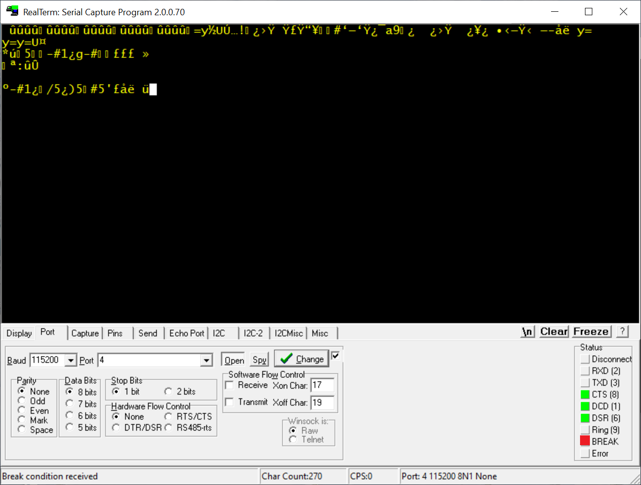 Кажется величины логических уровней влияют на отображаемую информацию в терминале.