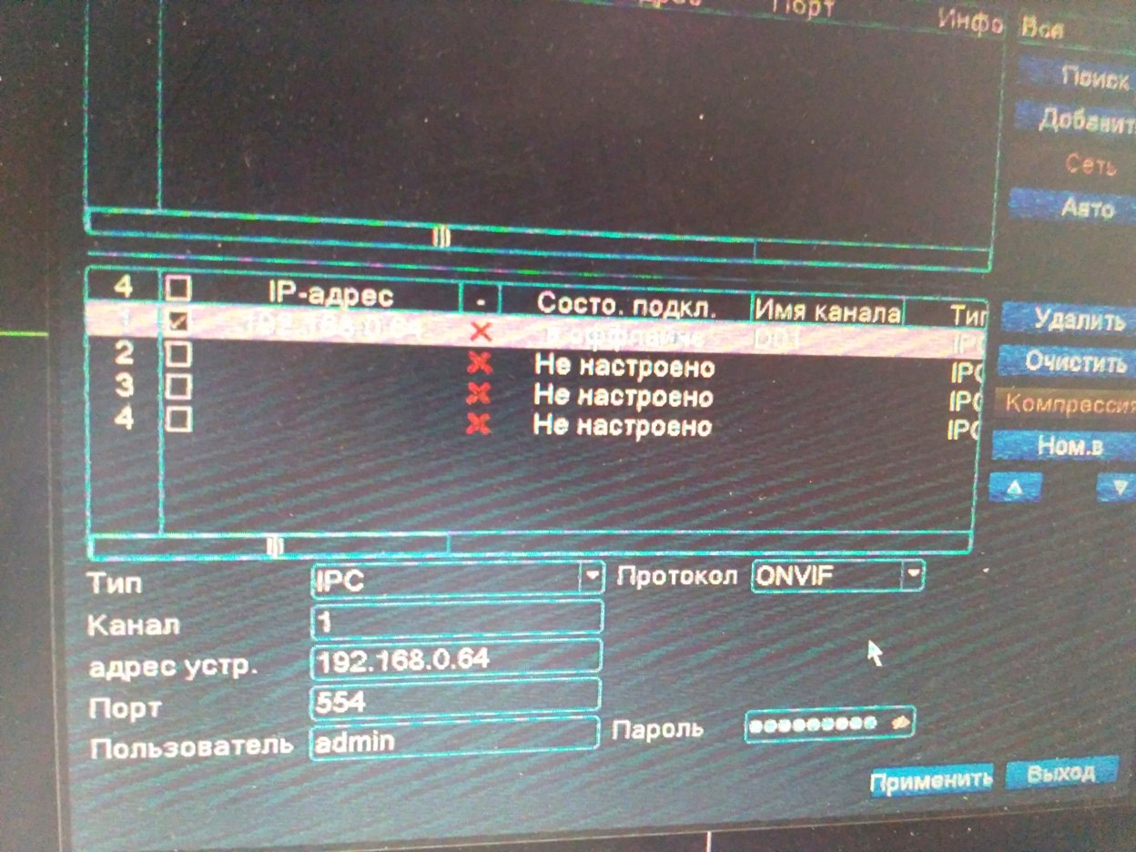 AlienP666 писал(а): Установите ONVIF укажите логин и пароль, после обязательно перезагрузите регистратор.