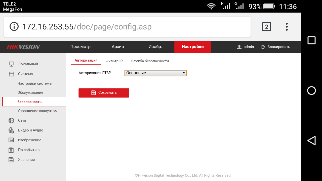 Настройка, авторизация rtsp переключи.