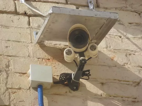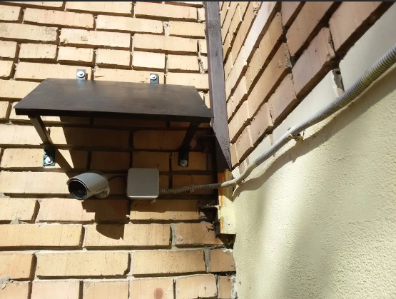Если посмотреть на состояние гофры возле камеры, то понятно что ей уже прилетало, и козырек появился уже из опыта.