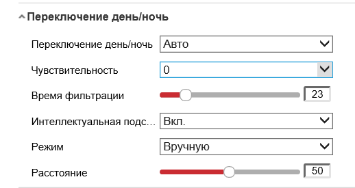 Смарт ИК включено, режим Авто, чувствительность 5, время фильтрации 50