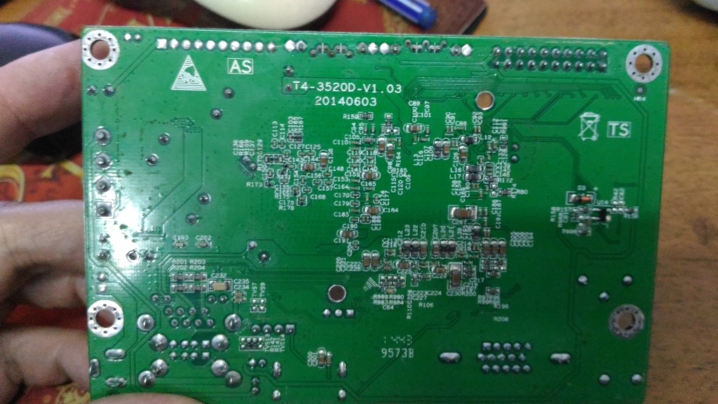Не шибко то разглядишь тут, это ж модуль 38×38, тут smd совсем мелкотня и дорожек не видать. Пару точек нераспая на плате есть.