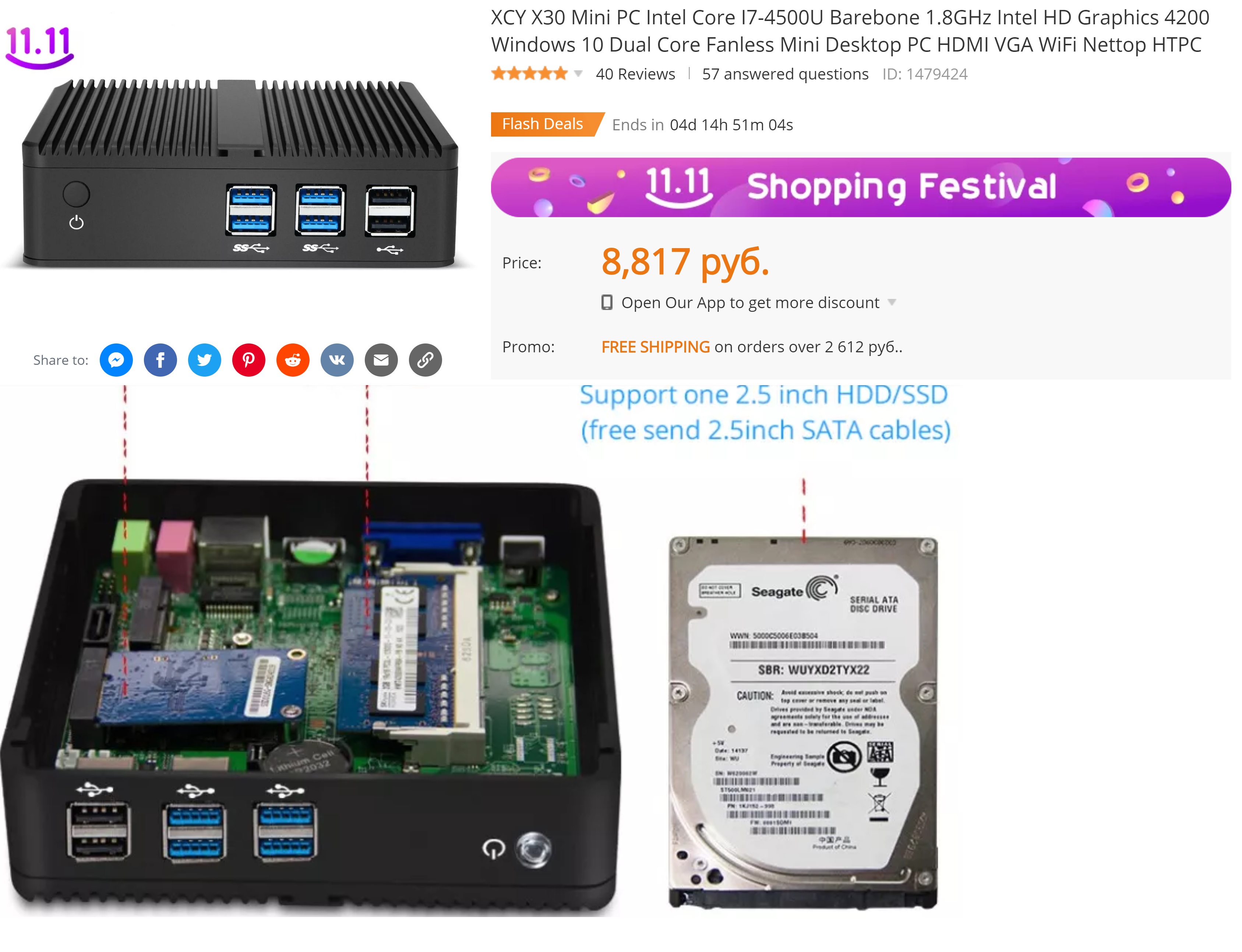 Сейчас появилось много доступных вариантов на мини-компьютерах. Например вот такой на Core i7-4500U за 8800руб.