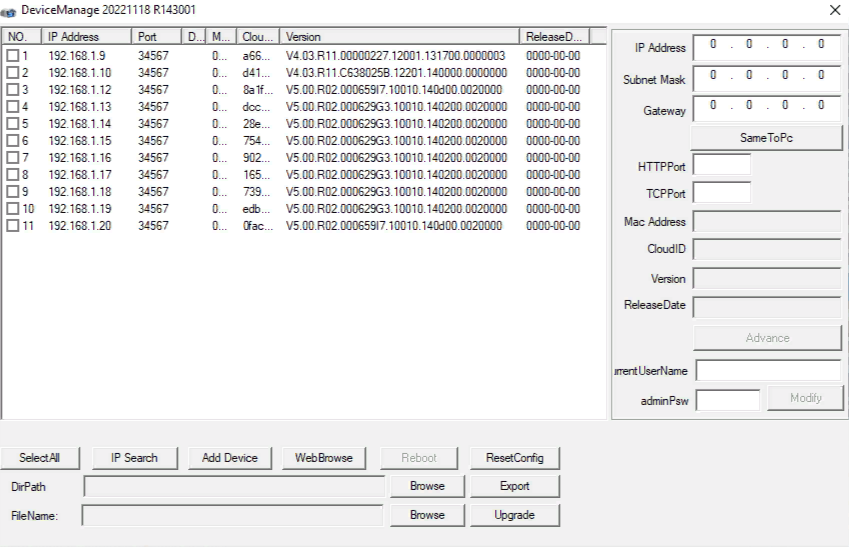 Вы нашли версию регистратора, они начинаются с V4. Камеры начинаются с V5. Раз вы попадаете на регистратор, то в нем вы можете посмотреть какие камеры у вас подключены. В принципе прога, скрин которой выше, должна была показать прошивку остальных камер.