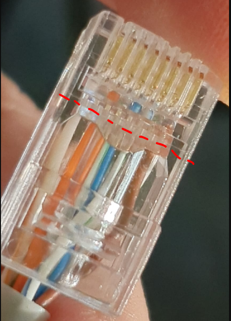 Принял как истину, решил для начала переобжать все что доступно. Случайно выяснил, что появились "проходные" коннекторы, где проводочки высовываются из коннектора и при обжатии обрезаются. Соответственно, купил кримпер с ножом и сами коннекторы. Начал тренироваться на огрызках кабеля - а не получается завести провода в нужные пазы! Потратил 10 минут на один, хотя в обычные коннекторы заходят правильно сходу.