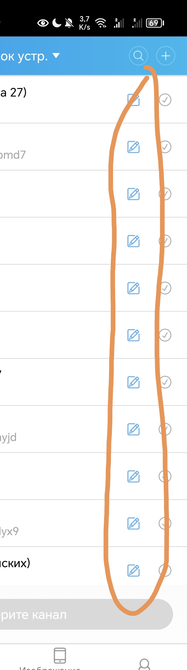 На телефоне приложение Xmeye и в нём прописано пять регистраторов XM в облаке по id.