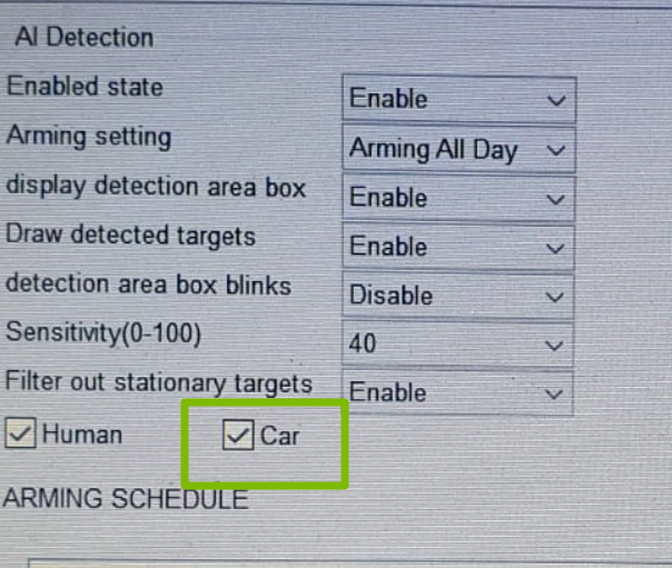 Прошил камеру через LMS. Прошилась, т.к. сразу изменился цветовой баланс (зеленая крыша стала фиолетовой). В меню появилась галка на обнаружение машины: