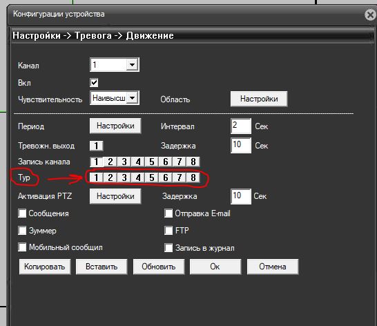 arthur.maliev писал(а): При том, когда активирован тур, при событии по движению, как раз и включается на мониторе регистратора канал выбранный в ТУРе во весь экран.